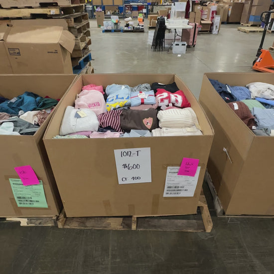 This 400-piece adult apparel pallet includes a stylish and comfortable assortment of tops, sweaters, button-downs, graphic tees, cardigans, and pants. The selection features branded and boutique-style items in a range of sizes and colors, perfect for seasonal transitions or daily wear. Many pieces include original tags and are in ready-to-resell condition.